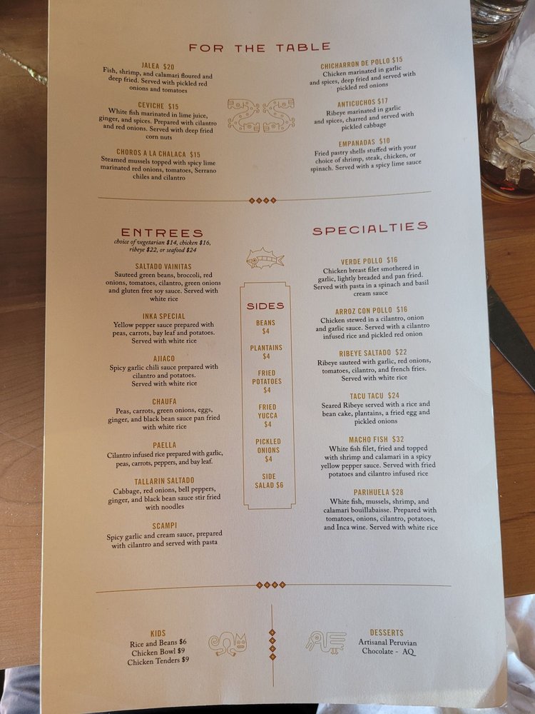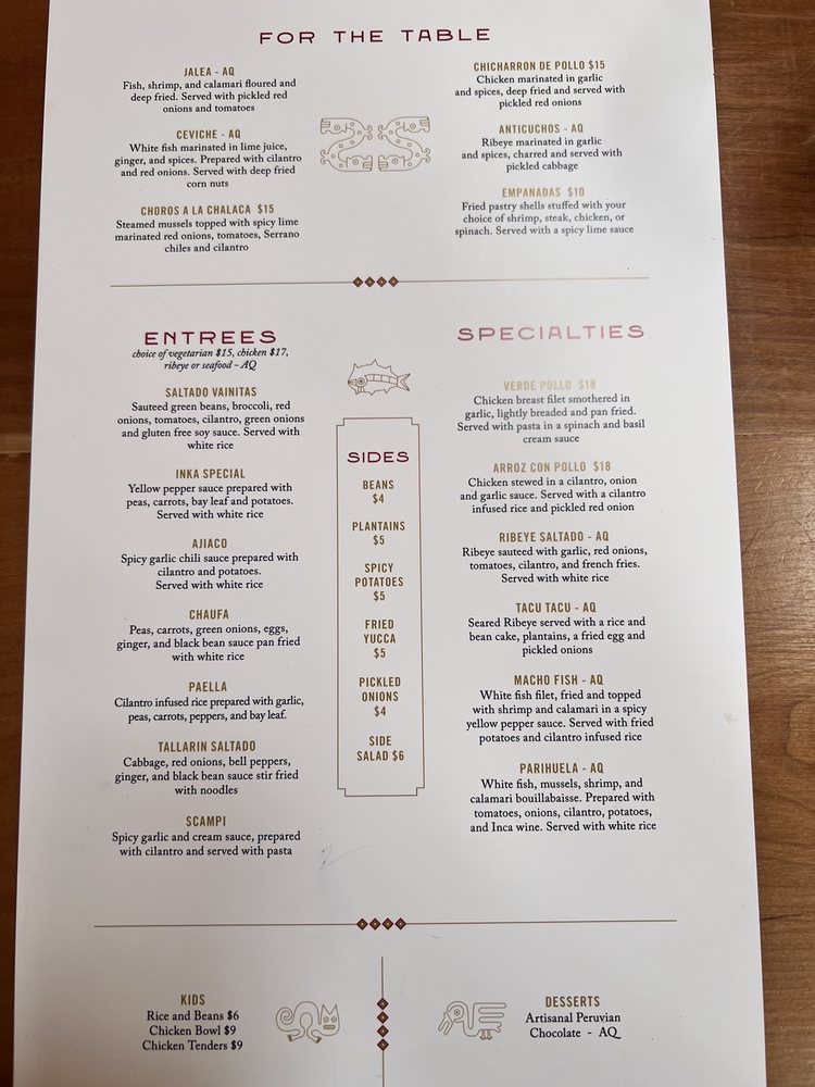 Each plate is crafted with quality ingredients and authentic recipes, creating a memorable dining experience. With rave reviews highlighting the attentive service and exquisite presentation, Inka Mama's promises a culinary journey that transports you straight to the heart of Peru.